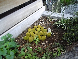 釜屋跡。 保土ヶ谷宿(神奈川県)より寄贈の松がある。 目指せ!全宿場の松コレクション!! 根元には・・・・・ キュウイ? |