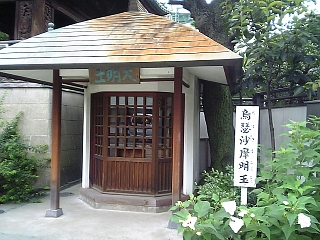 長徳寺の閻魔堂。 正面の格子の1つだけガラス張りで中が見える。 覗くと閻魔さまが・・・・・。 |