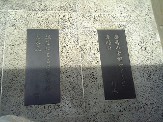正岡子規の句碑。 「六郷の 橋まで来たり 春の風」 小土呂橋の遺稿。 |