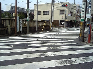熊野神社前の横断歩道。 ひ、広い。横断歩道だ。 どこ渡ってもいいの? |