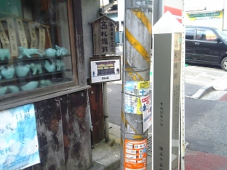 保土ヶ谷宿高札場跡。 ひなびた蕎麦屋に手書きの看板があってソレっぽい。 |