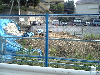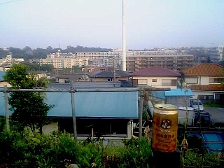 坂の中腹の眺めのいいとろこで少し休憩。 晴れてはいるがかすんでいて遠くまで見えず。 光化学スモッグ? やだやだ。 |