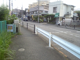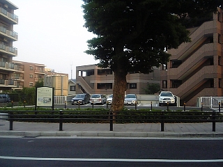 権太坂を登りきって境木立場跡の前を過ぎる。 向かいのマンション前広場。 道はせまく車多いのに結構歩道は広い。 |