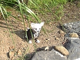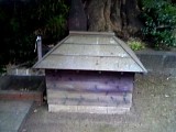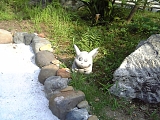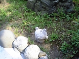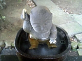 16:23 川を渡って外川神社の境内へ。 小寿鶏放翔感謝の碑。 裏手にはあやしい洞穴(?)が。 |