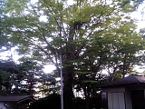 対岸に外川神社を臨む。 手前の大木が大ケヤキ。