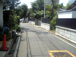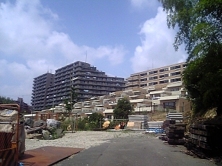 焼餅坂を下りていく。 右手は造成されマンションが立ち並ぶ。 |