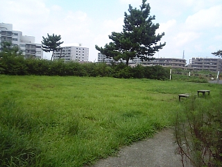 標識に従って右側の公園へ行ってみる。 公園というか野原だったりして。 で、見えるのはやはりマンションばかり。 |