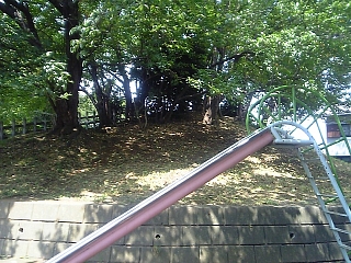 反対側の公園にも遠回りして行ってみる。 こっちは児童公園? 歴史的名跡がぁ〜。