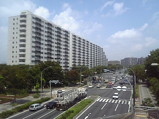11:38 福寿観音から東戸塚駅方面に寄り道〜。 福寿歩道橋で環状2号を渡る。 見えるのはやはりマンション。 |