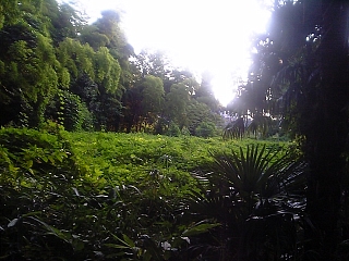 善了寺裏山の明充学舎の跡地。 まったく手の入ってない更地がいい雰囲気。 でも案内板によると近々墓地区画になるらしい。 |