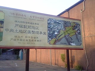 いよいよ戸塚駅も間近。 戸塚駅再開発の案内看板も。 開かずの踏切も立体交差する計画のようだ。 |