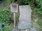 心中句碑。 「井にうかふ番いの果や秋の蝶」 芭蕉句碑。 「世の人の見付けぬ花や軒の栗」 |