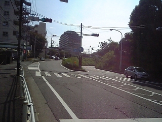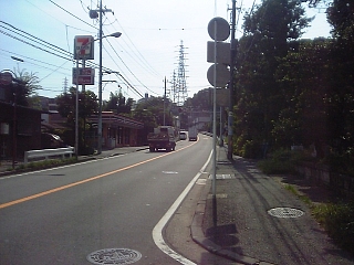 大坂上。 突然、分岐道? 国道1号バイパスと合流するため左に行く。 |