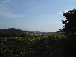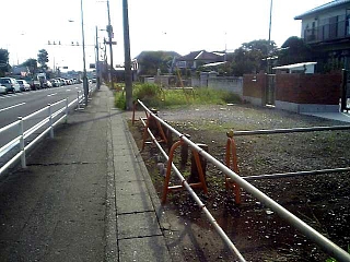 そこの歩道橋にわざわざ登って眺めを楽しむ。 この方向に蛇が住む影取池があったらしい。 |