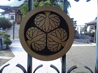 大運寺の前を通る。 門が堅く閉ざされてるがこの紋所に威厳あり。 ひかえおろう。ハハーッ。 |