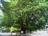 本堂前の巨大イチョウ。 一遍上人の像ももちろんある。 |
