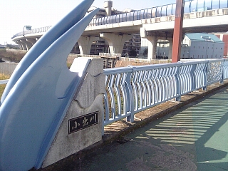 9:48 下町屋橋で小出川を渡る。 隣で鎌倉時代の橋を発掘してるのに、 こちらは近代的な橋でかなりのギャップ。 |
