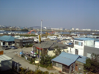 馬入橋を渡る。 河川敷にはボートハウスとか居酒屋(!)とか。 (ちなみに居酒屋の名前は「タコ」) |