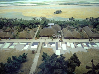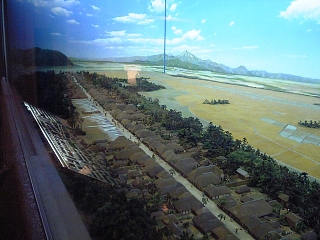 平塚八幡宮の裏にある平塚市博物館へ。 (かなりの寄道。) 平塚宿のジオラマ(縮尺200分の1)を見学。 |