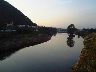 15:54 平成の一里塚や大磯八景の歌碑を見て 花水橋を渡る。 のどかな夕暮れの風景だ。 高麗山が左に見えるがやはり西日の 逆光で写真がうまくとれない。 |