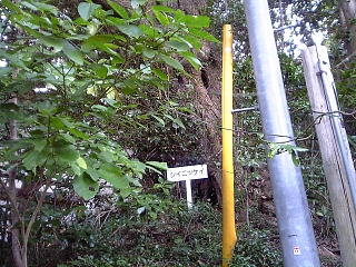 高来神社のシイニッケイ。 シイとニッケイが合体した木。 よ、よくわからん。 |