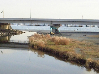14:36 押切橋を渡る。川の名は中村川。 ほとんど河口。すぐそこは海。 |
