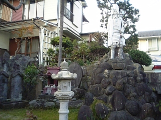 民家の庭に佇む加藤清正の石像。 んー、ただの民家じゃなさそうですね。 祠や石碑もあるし。 |