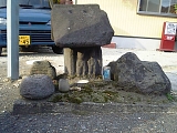 路傍の道祖神。 屋根が重そうなカンジ。 |