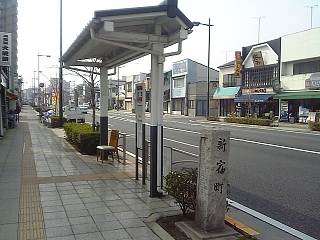13:02 昔の新宿町のあたり。バス停も宿場風? それにしても人通り少ないなー。。。 どこかの新宿とはえらい違いだ。 ![]() 新宿交差点で左折する。 す・る・と。。。 |