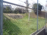 12:38 ちょっと寄り道して城の外郭土塁を見に行く。 歩いていった道は昔は堀だったらしい。 ![]() 爆弾が落ちた跡も残る。 |