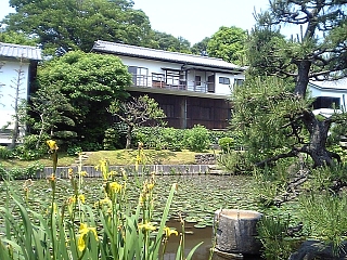 10:38 まだまだ寄り道は続くよ〜。松永記念館へ。 庭園のベンチでちょっと一休み。 静かでのんびり〜。 |
