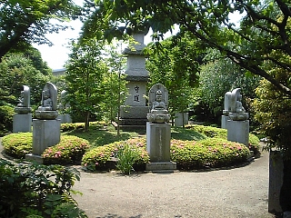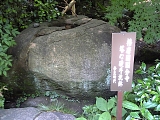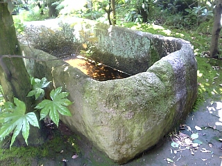 さて、観光、観光。。。 庭園には全国(?)から集められた石造物が。 これは南都東大寺(あの大仏の?)の石造蓮池。 天平時代の作だ! でも形も大きさもどうみても湯船。 |