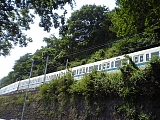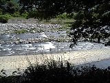 左は川、右は山。 自然いっぱい。いい景色だ。 電車邪魔? |