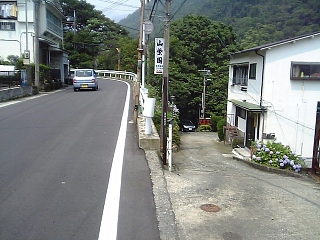 9:53 カーブにさしかかる。 ここの向かいにも道祖神。 湯本茶屋の集落へ。 湯元茶屋一里塚跡も通過。 |