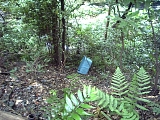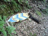 なんでこんなとこにサーフボード? そして、空き缶回収用のカゴまで! |