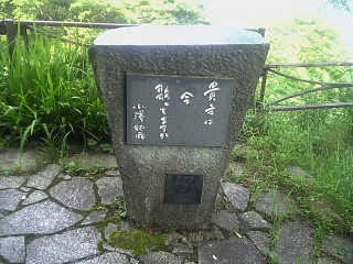 でも、そのまま真っ直ぐ登ると樫の木平。 見晴し茶屋の駐車場脇に小沢征爾の碑。 貴方は 今 歌ってますか って聞かれてもなぁ。。。 歌っちゃいます? |
