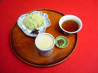 となりの甘酒茶屋ではもちろん、 甘酒〜。 一緒にきなこ餅もね。 |