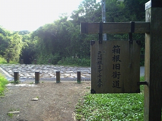箱根八里の歌碑の手前から下り坂。 ガンガン下っていくと車道と交差する。 元箱根まで十五分。