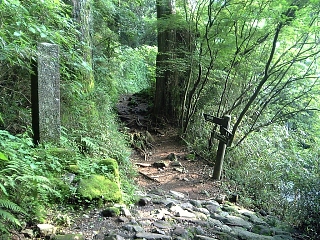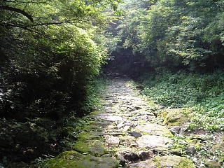 まっすぐ石畳を行くと県道に出るが、 左に迂回しなくてはいけないらしい。