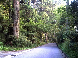 でたー。杉! 花粉症の季節じゃなくてヨカッタ。 しばらく杉並木を行く。 |