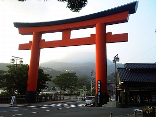 17:39 国道1号に合流! 箱根神社鳥居が大きくそびえる。 その横には賽の河原もある。 |