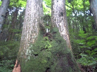 いろんな杉がいっぱーい。 双子とか、親子とか、 切り株になっちゃったのとか、 穴が開いてるのとかなどなど。 |