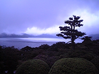 と言いつつ、夕暮れの恩賜箱根公園内へ。 雲海が出て芦ノ湖が絶景です! |