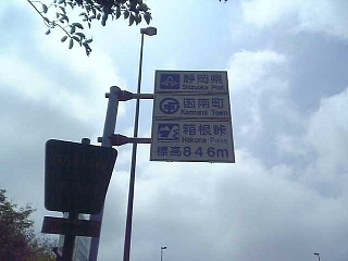 国道箱根坂路改築記念碑を見て戻ると上には 道路標示 静岡県 さよなら神奈川〜。 |