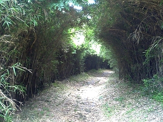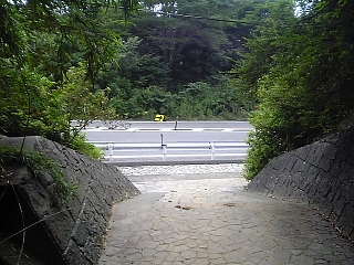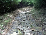 そして道は山道に。 どうです! この見事な笹トンネル! ![]() そして西坂にも石畳が もちろんある。 |