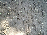 見晴らしのよい場所に! 現代の東海道(国道1号線)を見下ろす。 ![]() 再び森に入ると意味深な 足跡が。。。 い、犬の散歩だよね。 |