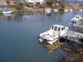 ボートがいっぱーい。 沼川にかかる河合橋を渡る。 写真じゃわかりづらいけど ここの 水の色 変なんです。 |