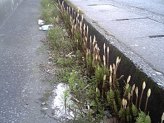ほらつくしがいっぱい。 春ですねー。 てもね、周りはアスファルト、、、、。 |