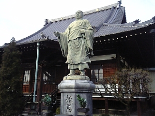 そのまままっすぐ行くと妙祥寺。 大きな日蓮像だー。 |