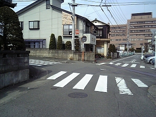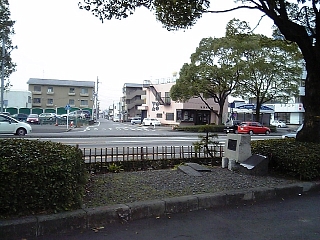 駐車場を抜けると東海道跡の碑。 青葉通りの向こうに道は続いている。 さすがにここは危険なので迂回しないと、、、。 |